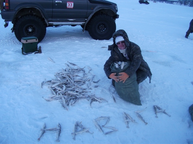 Приветствую всех. Вчера вернулись с мелководки. Впринцыпе поездка удалась. Корюшки не много, по сравнению с прошлыми поездками. В субботу поймали десятка три, правда вовремя переключились на навагу, которой на сентябрева достаточно. Сколько надо столько и лови. В воскресение был не плохой подход корюшки. За пол дня поймали больше рыбы, чем за всю субботу) Наверно повезло с местом. Теперь несколько слов по дороге. В ту сторону ехали 5 часов. Шишигу в первой наледи обошли. На тундре догнали колонну, но так как переметы были небольшие удалось обойти. Первый раз за все поездки без задержек прошли перевальчик, а то вечно там кто-нибудь сидит. Под конец была ещё одна разбитая наледь, но когда мы подъехали, мужики с пилами уже сделали объезд, перевалив кучу кустов. За это им спасибо. Назад ушли с обеда. Наледи все подмерзли и были не разбитые. Немного постояли у буханки и встречным сафарем и сурфом. И под перевалом, где на подъеме стащило сначала паджика, а потом буханку, которая перерыла пол подъема. Люди если вы едите в такие места, ну поставте вы хотя бы нормальную всесезонку. Сколько уже видел там уазиков на практически лысой резине. Вот перед подъемом, говришь мужику на буханке, приспустись немного, резина ведь никакая. Ноль эмоций. Я мол и так нормально. Результат, его тащат в перевал два сурфа на сцепке, дорога всем остальным испорчена. Главное перед ними в этот перевал совершенно спокойно поднимаются Ноах с СРВ да ещё вытаскивают по дороге эскудо слетевшего с колеи. Надо кстати отдать должное водителям ноаха и срв. Мы за ними шли какое то время, очень даже бодро и уверенно продвигались по наледям, пусть даже и не разбитым. Не сладко наверно им пришлось на чистом и тундре, где появились переметы и почти постоянно довольно глубокая колея. Мы же прошли оставшийся путь без проблем, потеряли на тундре по времени так как скорость движения упала. Вобщем со всеми задержками были в дороге 4 часа.
