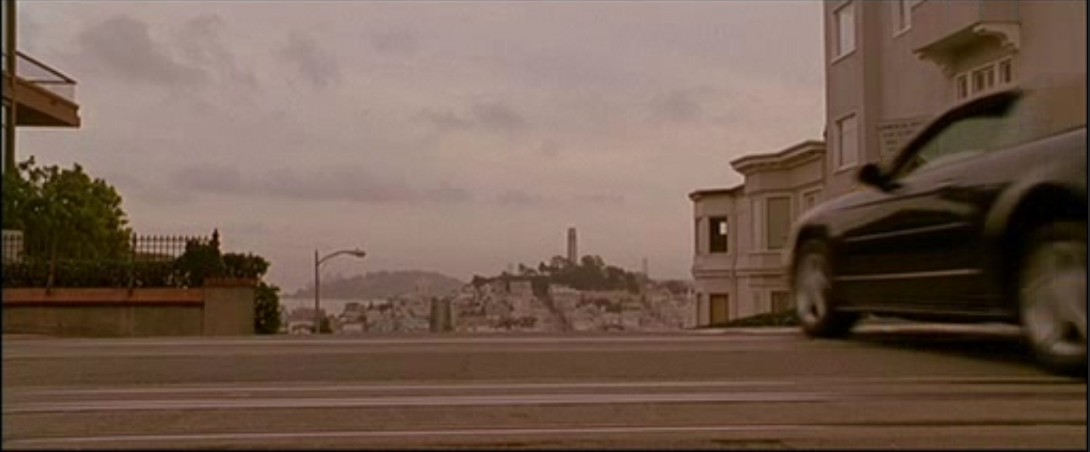 Торонага, по фильму он вроде как просто пересек перекресток. Не заворачивал, ехал прямо, появился из-за кадра справа и ехал прямо.