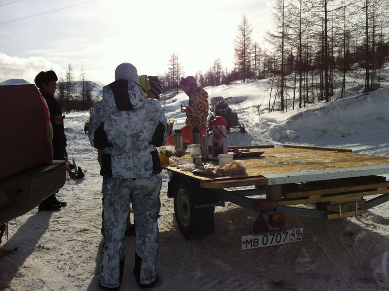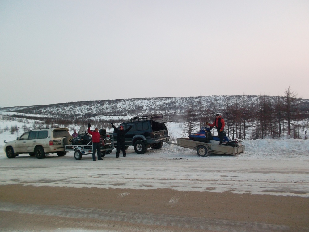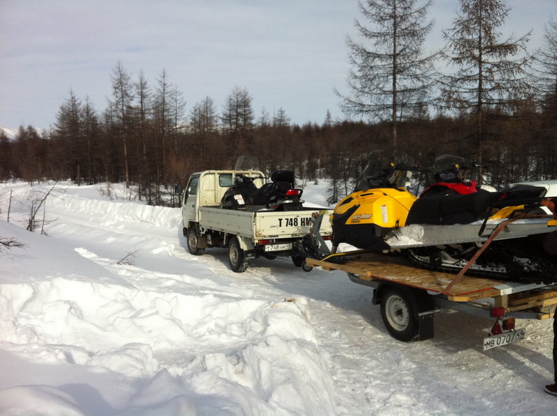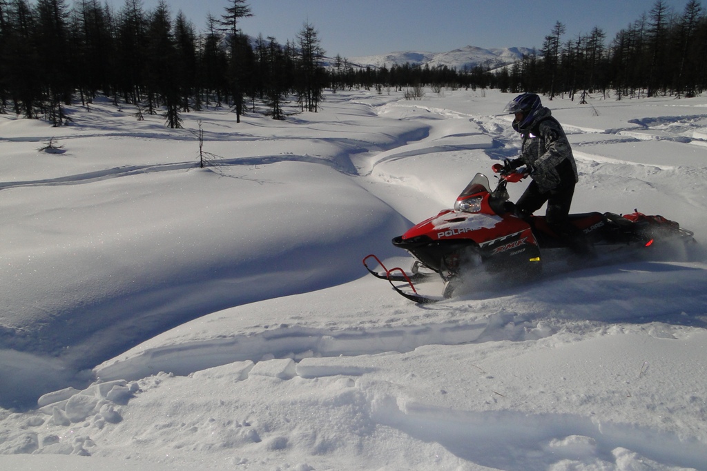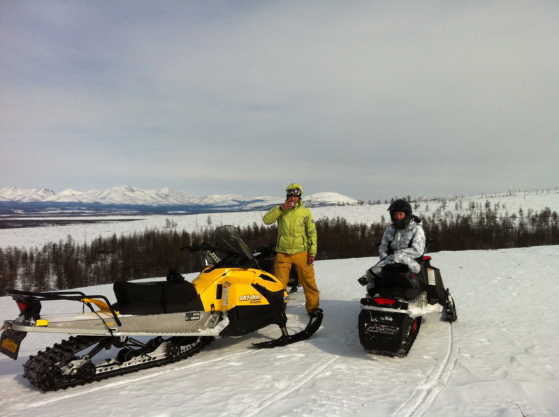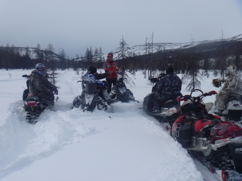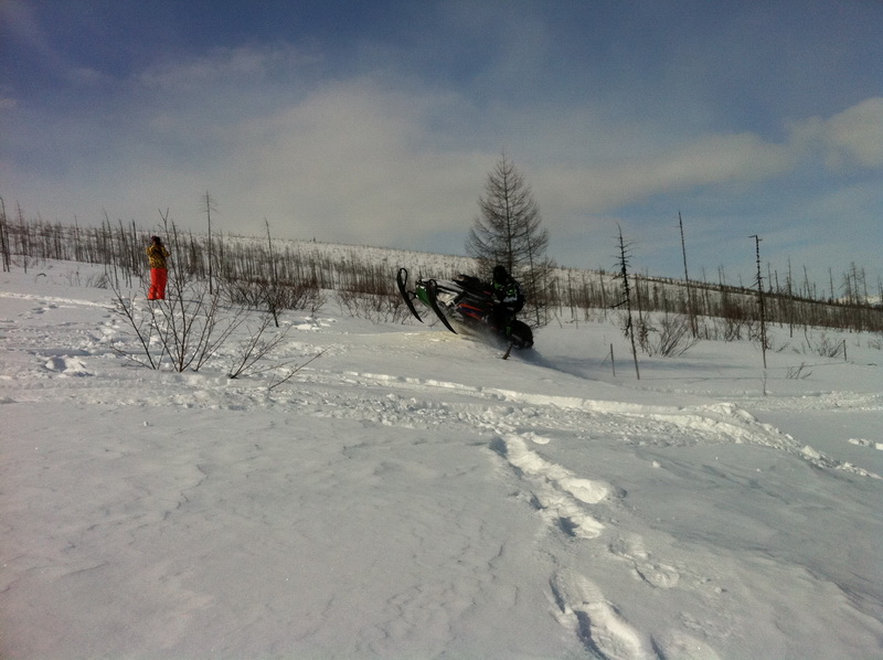 Катнулись четырьмя снегоходами не доезжая Уптара. Солнце.