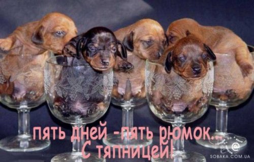 Обнажая ямки щек. Я в тебя влюбленный шибко, Словно радостный щенок. Ждал тебя неделю всю я, Много-много долгих дней, Дай тебя я поцелую, Что пришла таки ко мне. На тебя смотрю в два глаза, Позабыв про все дела - Здравствуй пятница, зараза, Наконец-то ты пришла. -------------------- Стерилизуйте дворовых и домашних любимцев!