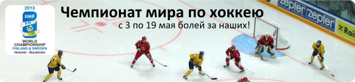 Итак, час пробил! Завтра начинается главное спортивное событие 2013 года - ЧМ по Хоккею. Ура товарищи!