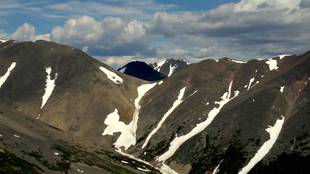Ручьи переходить не пришлось. Всю дорогу сухо. Подъём постепенный, во многих местах можно идти по старым бульдозерным колеям, без значительных перепадов. Крутой склон был только в одном месте. Большую часть прошли по вершинам и гребням. Чего и вам желаю. Аккуратно на склонах-местами камни "плывут". Камнеупорная обувь - обязательна, а так же бутылки для питьевой воды. речка при входе. вверху - снежники. ждя перекуса по дороге лучше взять термосы, с дровами наверху проблема. 10-го будем так же в районе Карамкена. вероятно пересечёмся. Вперёд, по гребню козьими тропами (то есть бараньими) В самых тихих местах - уже цветение. Вот она! обратный путь был тоже по гребню. ноне у всех. нам нужно было забрать ставшие лишними и оставленные на подъёме резиновые сапоги, а часть группы спустилась по распадку до старой дороги - и к трассе, где и была подобрана позже. скоростной спуск на попах и рюкзаках - быстро, весело, мокро -------------------- Для бешеной собаки пятнадцать километров - не крюк...