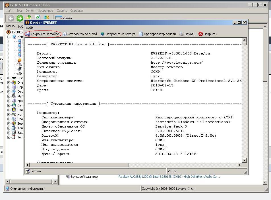 вопросы и ситуации бывают разные, и для большинства нужны точные данные о вашем компьютере (ноутбуке), это можно сделать так: программа Everest (ссылка доступна только зарегистрированным), она Portable (не требует установки), далее по картинкам: Сообщение отредактировал lynx - 15.2.2010, 15:11 -------------------- |