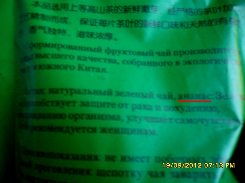 " Зеленый чай с яблоКОЙ", а самое главное состав содержимого : "зеленый чай, АНАНАС". -------------------- SUZUKI ESCUDO 2005 г