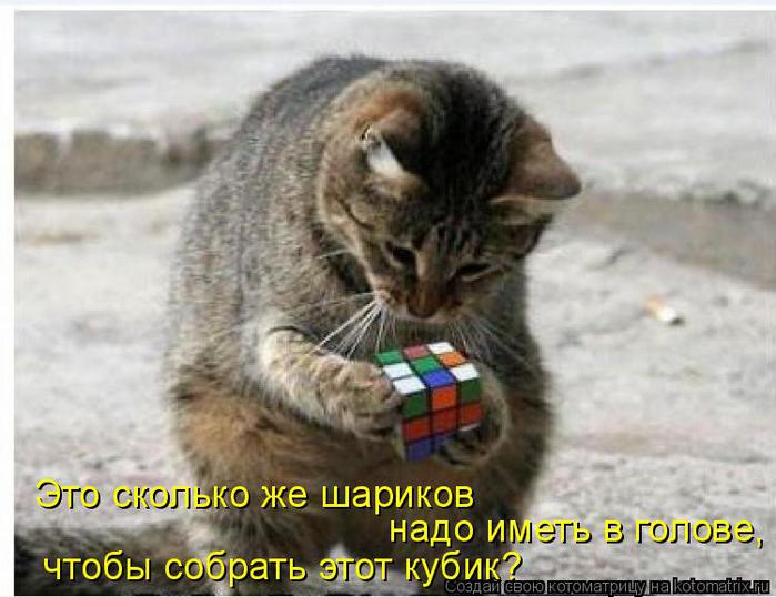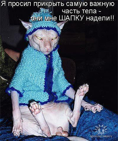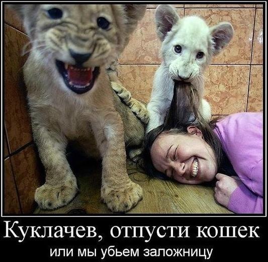 "Котёнок Котовская не знает поражений. Жизнь котёнка Котовской состоит исключительно из радостей и побед. С ее точки зрения. Котёнок Котовская с восторгом принимает любой поворот событий. Взяли на руки? Ура, победа, меня взяли на руки! Перестали гладить? Ура, победа, меня отпустили! Дали еды? Ура, мне дали еды! Не дали еды? Ура, развлечение продолжается, можно выпрашивать еду дальше! Открыли балкон? Ура, можно гулять на балконе! Закрыли балкон? Ура, можно гулять по квартире! Со мной играют? Ура, со мной играют! Со мной не играют? Ура, наконец-то поиграю сама! Меня куда-то несут за шкирку? Ура, наконец-то меня несут за шкирку! Дали по жопе? Ура, я довела их до "пожопе"! Старшая кошка дала люлей? Ура, можно снова на нее напрыгнуть и получить люлей еще раз! Поэтому, кстати, котёнка Котовскую совершенно невозможно наказать: шлепок по заднице она расценивает как событие, не менее радостное, чем все остальные. Ну, положим, мы не можем больно ее ударить, но старшая кошка иногда (если ее очень достать) дерется по-настоящему. И что же? А ничего, получить как следует - это тоже радость. Котёнок Котовская явно пришла в этот мир, чтобы научить нас, глупых человеческих детёнышей, оптимизму. Глупые человеческие детёныши пока ходят за котёнком Котовской с табличками и записывают". Взято в ЖЖ у chingizid в про котёнка Котовскую -------------------- Нормальные девушки сидят "по стойке смирно", судорожно вцепившись в руль, олицетворяя своим видом механика-водителя танка, идущего в атаку. На лице - ярая бдительность агента КГБ времён холодной войны (искоса бросаемые по сторонам короткие, но пристальные взгляды, типа "на чью мельницу воду льёшь, гражданин, а?")... (С) jey |