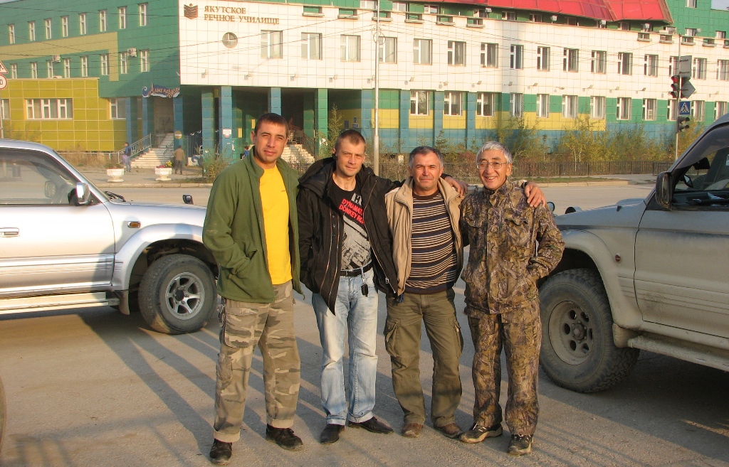 Слева направо: Владимир (клуб "Внедорожное Приморье", Владивосток, ехал с нами в Магадан), Дмитрий (клуб "Мамонт", Якутск, его хорошо знают те, кто ломался в Якутии. Был в Магадане 4 года назад.), некто Дюйм...(где только не был), Валерий (клуб "Мамонт", он же "дядя Валера", Приезжал на Ниве в Магадан этим летом вместе с другом Михаилом(делает фото) и собачкой.).
