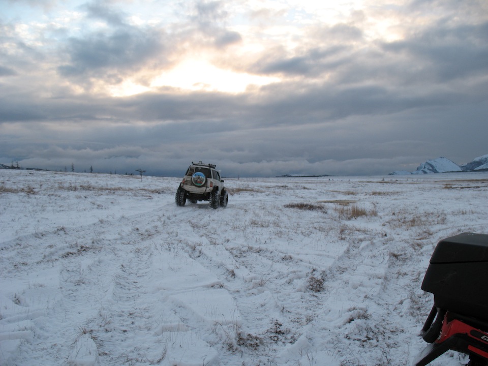 Не успели мы утомиться ожиданием окончания ремонтно-восстановительных работ суровых механиков, как их не менее суровые пайлоты рванули по коробкам и упылили ввысь (перевал же). Мы, конечно не ожидали такой прыти) не спеша собрались под легкое нытье суперпаджика (он понимал что когда на тундре начнет валиться мы его не вытащим, а автобратьЯм, далеко возвращаться). Короче нагнали мы их только в тундре) парни растянулись километра на два. Между ними шныряли два экземпляра Ольского автозавода, подставляли фаркопы для лебедок. Это, отметившийся ранее на перевале смайл (сбоку он еще ржачнее) и какбЭ Паджеро: Лазеют)) они - мамаНЕгорюй, впечатляет)) И тут мы, все в белом, на белом (снег типО) шьем, гордо и снисходительно посматривая на суровую борьбу с болотом))) жЫперы нас на видео снимают, вседела)) и... прям эпический фэйл)) - Вован вместо того чтобы объехать ааафигенную канаву, уверовав во всепроходимость гусей, влетает в нее на всем ходу и пристраивается))))) - Блин, я, кажется, застрял! - так и сказал!!!, всех просто порвало, катались все))) Как оказалось, он разул две задние гузки (высокая техническая экспертиза, в последствии, обнаружила камни и плохую натяжку). Выдирали двумя лебедками. Пока минут пятнадцать мы натягивали гуси, на весь тундряк по рации раздавались оры: Алярм-алярм)) алерт-алерт)) хелпМИ-хелпМИ))) Ну плииииз!!! Это Леха на Паджике пристроился в самом начале)) видимо, услышав призыв товарища, мимо пролетел (удивил) эскудик)) для полноты и торжественности момента (на святое дело - товарища из беды выручать) ему очень не хватало мигалок))) Продолжение следует. Каминг сун))) |
