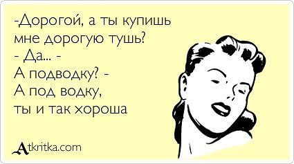 моя жена не женщина!!!!!!!!!! Про пилки знает меньше, чем про классификацию болтов,винтов и гаек! Бляяяяя...... ТСссс...не пали контору - перехватят!!!! сам себе начнешь завидовать!!! ))) -------------------- А всё таки прав был Кутузов: что бы спасти Россию надо сжечь Москву!!!
