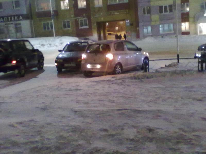 Напротив Колымского Арбата Витц и Карина на выезде со двора