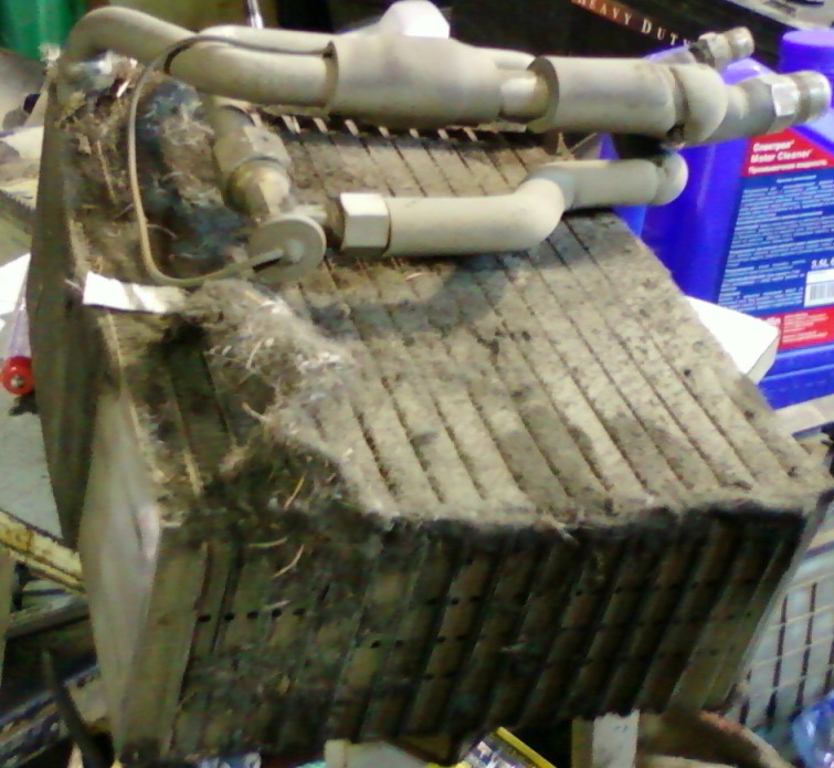 судя по фоткам,это типо был фильтр на радиаторе кондишена,а та его содрал?если такая же срань была на печке,может просто нужно было почистить радик печки и не гемороиться с кондишеном?или радик печки без паролонного фильтра,а прсто засран всякой пылью и шнягой?