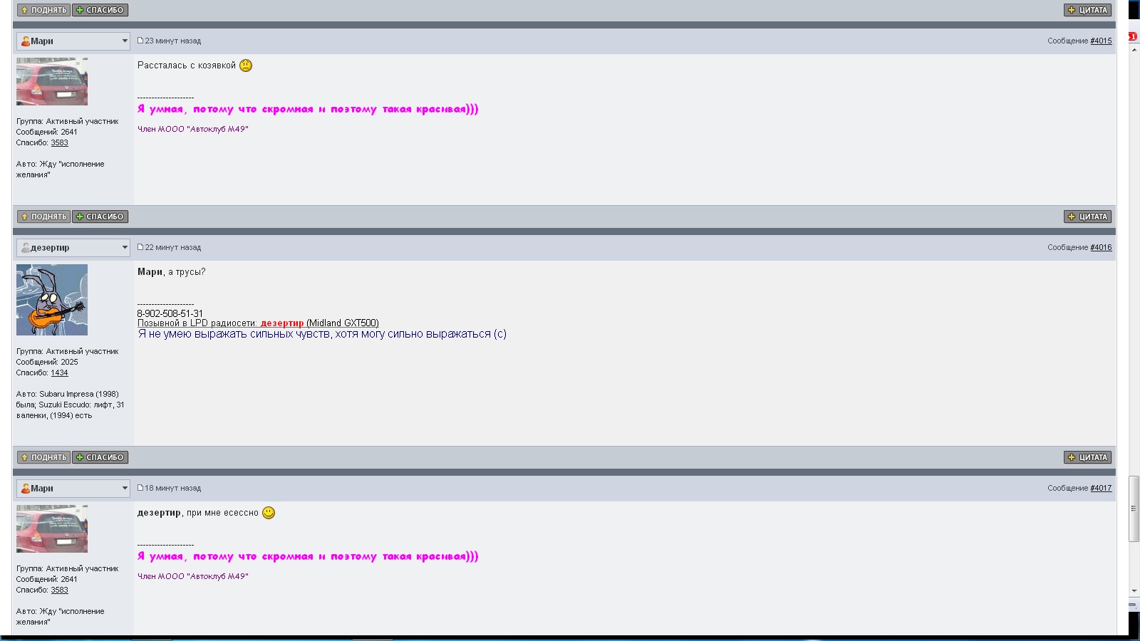 Что творится с автофорумом? тама это символ!!!! а вы все о бытовухе...правда Дезертирка слегка приземлила... не трусы... стринги! (делят ягодицы на две половинки @ (большая разница)) Сообщение отредактировал GOLLANDEC - 8.4.2013, 22:16 -------------------- |