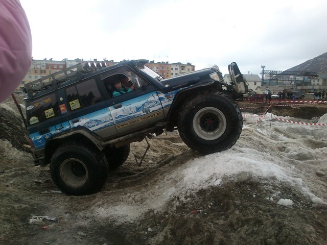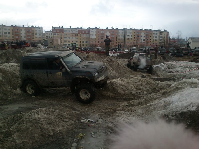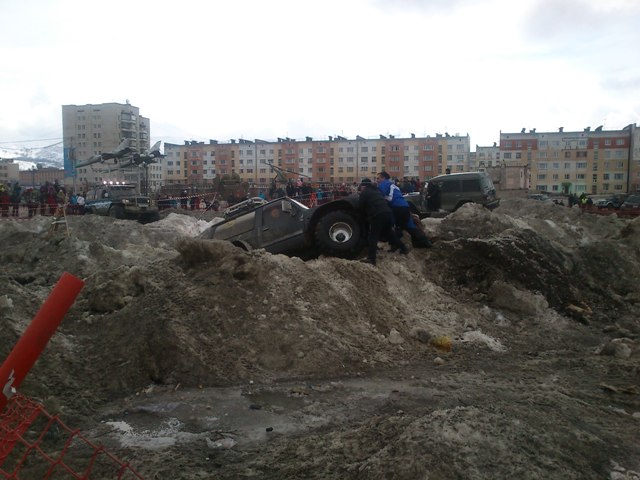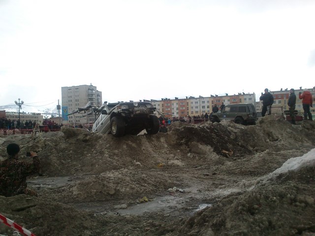 Сама суть - показательные покатушки по снежным барханам, наваленным в хаотичном порядке, может кому понравится, захотят приобщиться, может кто-то захочет на своей машине попробовать свои силы, под присмотром "большеногов" (т.е. сидеть до лета в снегах никто не оставит)... т.е. для владельцев внедорожников, которые не пробовали в полной мере полазить где-то это отличная возможность, потому что рядом с домом, с подстраховкой подготовленными машинами и опытными людьми. -------------------- Съешьте с утра живую жабу, и ничего худшего в этот день с Вами уже не случится.