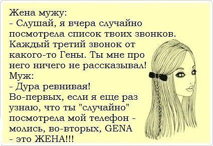 Муж уезжает на курорт один, без жены.Через неделю присылает ей смс: «Всё равно люблю только тебя!»Ответ жены: «Да и ты пока самый лучший»©