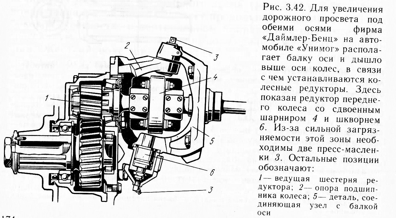В смысле как на унимоге? Но тогда, я не понимаю, что там под цилиндрической крышкой? Большая коническая шестерня, точно не помню но кажется на спицах для уменьшения веса.