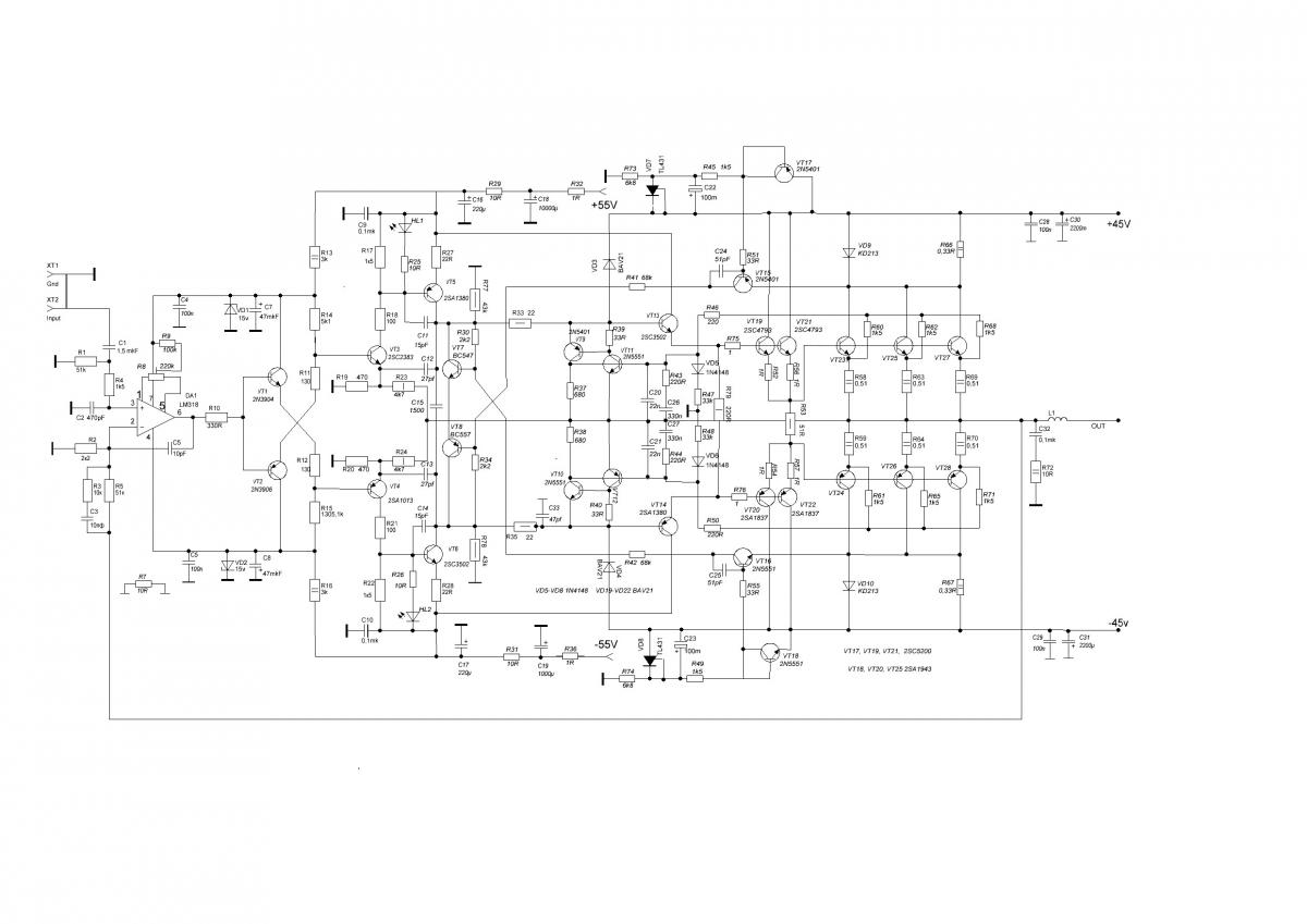 В качестве небольшого отступления. Вотъ схема оконечного усилителя современного ресивера Pioneer vsx-821. Первая схема авторская конструкция усилителя,который правильно спроэктирован. Чувствуете разницу?