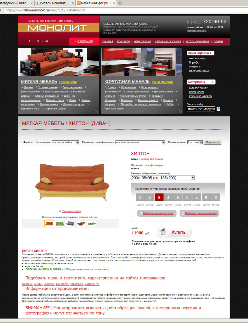 MagON, ну вроде как модель, оказывается у разных фабрик есть одинаковые названия моделей, посему ищу хилтона фабрики "монолит"