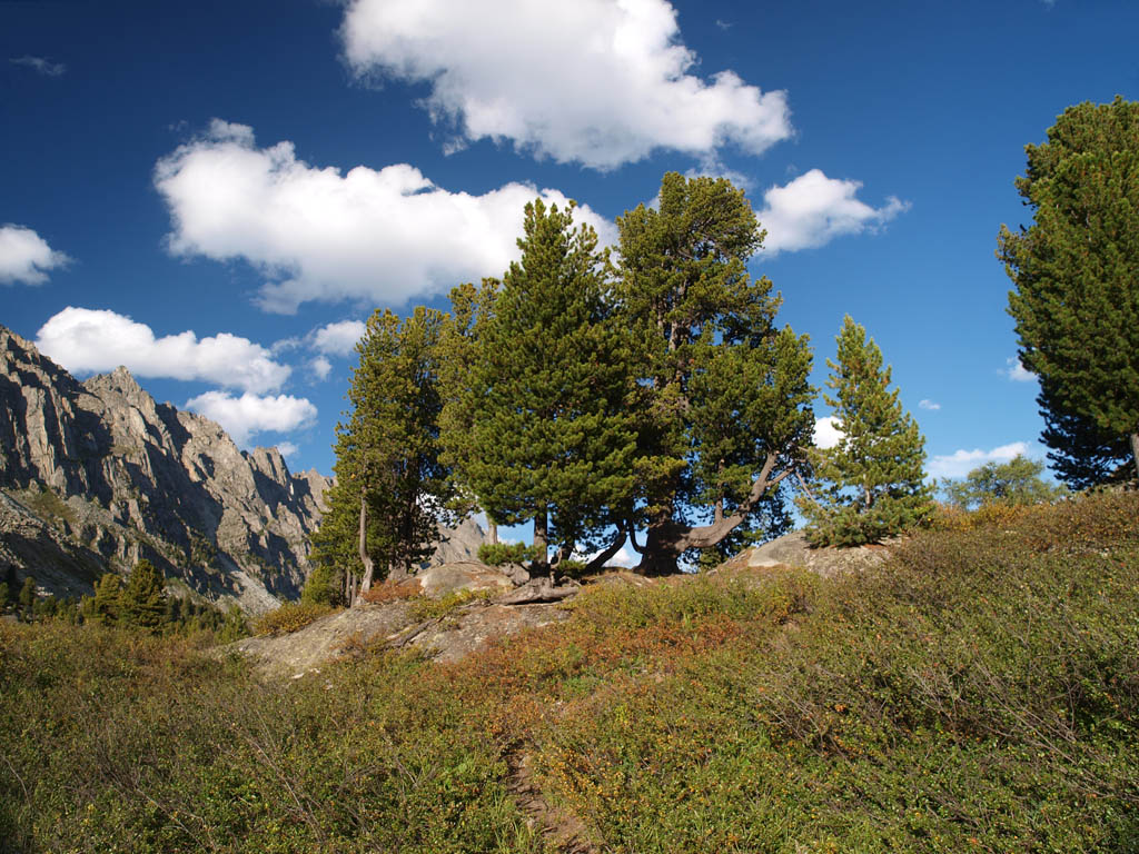 Медведей там хватает, только они обитают в более низких местах, где более обширная тайга... К примеру, в Уймонской долине, в районе Мульты - вобще медвежьи места считаются... Мы там в прошлом году ночью на переезде от Мульты к турбазе Кедровая Опушка ещё и в стадо диких кабанов чуть не въехали, метрах в пяти тормознули... Зрелище - не из приятных среди ночи: пара здоровенных секачей встара поперёк дороги пятаками к машине, и так простояли, пока всё семейство не перешло дорогу...