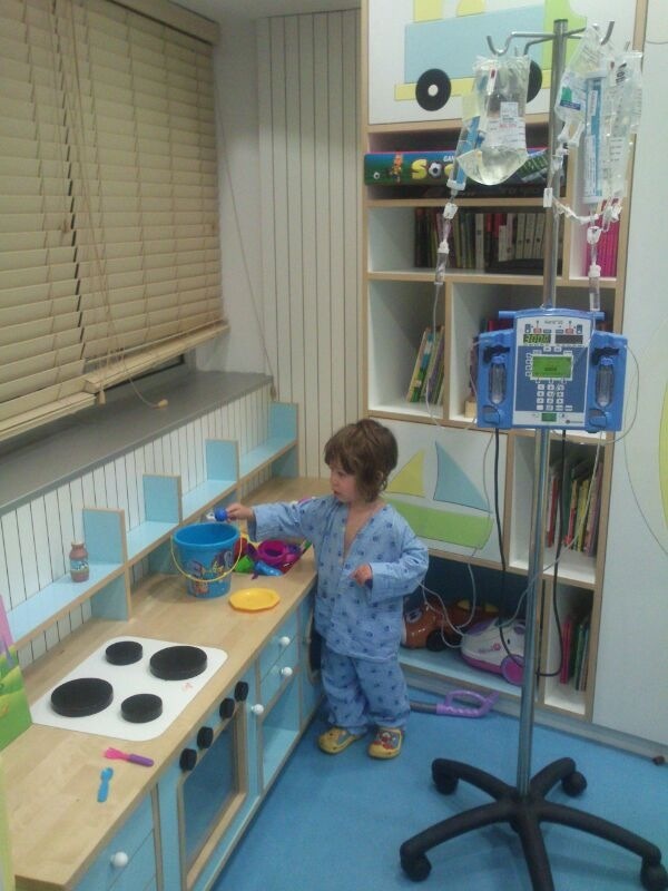 Юля там в шоке от комфортабельности палат. Все условия, чтобы деткам было полегче переносить лечение. Игрушки, телевизор-наушники-мультики, возможность родителей находиться рядом постоянно, душ и туалет в каждой палате. Лекарства, которые Любе капают, настолько ядреные, что даже подгузники нужно менять в перчатках и утилизировать как опасные отходы. Постоянно в процессе терапии и в перерывах между курсами будет контроль за всеми системами организма, которые угнетаются при лечении, все это будут компенсировать сразу, своевременно, сводя к минимуму возможные осложнения. А это Люба в игровой комнате для маленьких пациентов. -------------------- |