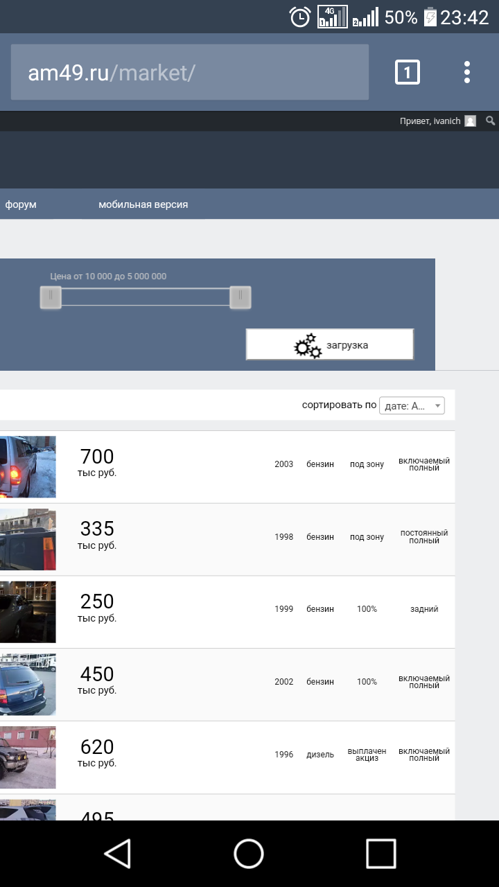 На всякий случай - в отдельном объявлении (http://am49.ru/add/mitsubishi-pajero-3/) цена сейчас уже поменялась. А вот в списке (http://am49.ru/market/) какое-то время может еще старая цена быть. Это нормально. Там несколько уровней кэширования. Часа за часа два-три у всех пользователей само обновится. |