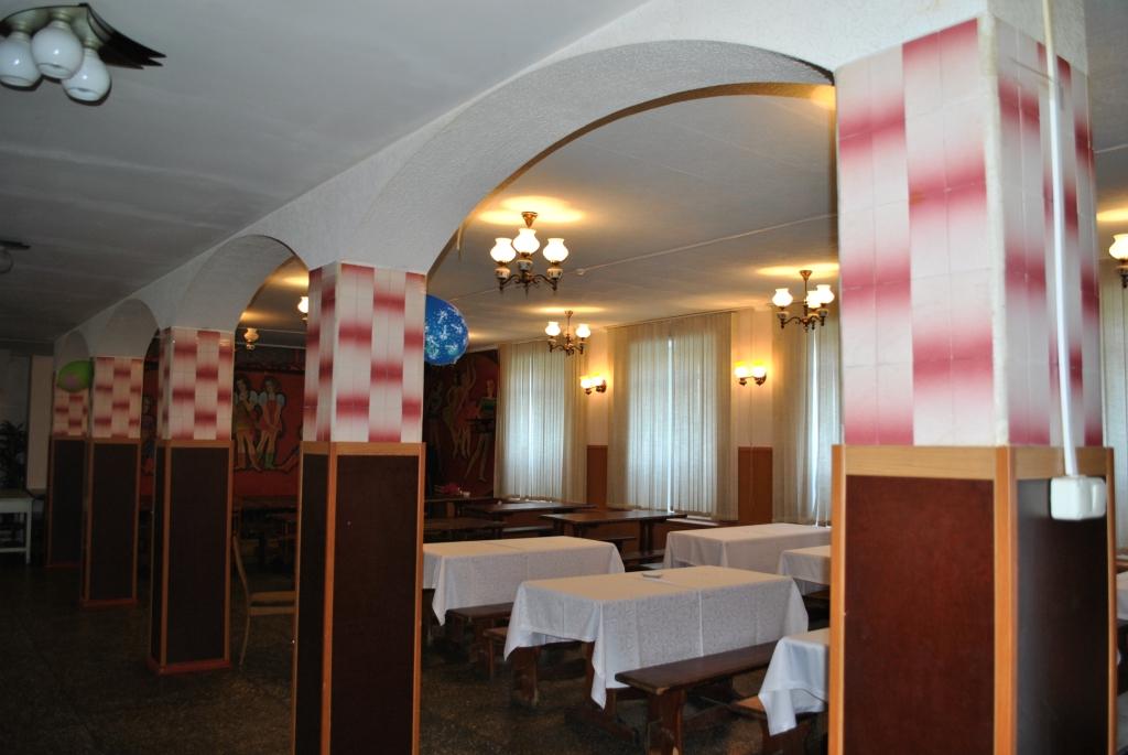 "За тортик" предлагаю вкрутить лампочки в проходе, а остальное оставить как есть, включая идиотское советское панно с гармонистом и шлюхами, и мрачное чёрное пианино в углу.