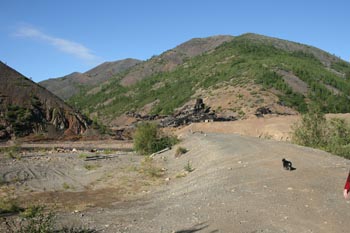 За Сеймчан заезжаешь. Там, где дорога в сторону Усть-Таскана заворачивает налево - едешь направо через мост. Едешь до прииска им. Чапаева (нежилой). Строения фабрики на другом берегу. До этого места я на Джимнике доезжал. Дальше брод через реку Сеймчан. Глубокая. На фото строения фабрики.