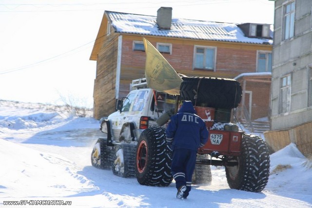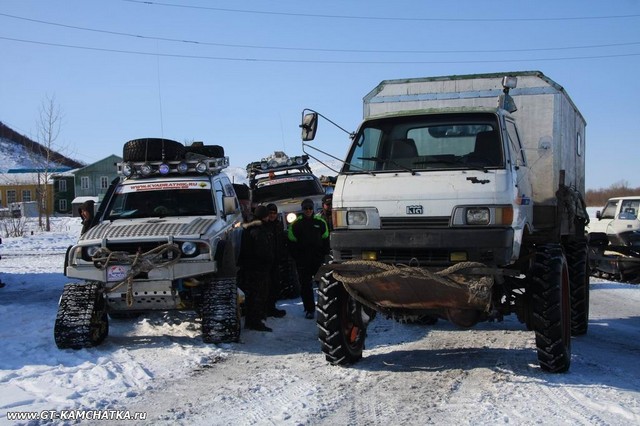 Кстати, маршрут от П-К через Корякию, Омолон на Якутск безнапряжно прошла группа врачей на трех Трэколообразных агрегатах из Белоруссии в 2006-м. Причем цель была не просто "пройти" а проводить медобследования (уклон на туберкулез, насколько помню) местного населения. Название экспедиции "Северное кольцо 2006". Тоже с прицепами, в апреле выскочили на Омсукчанский зимник, обулись в УАЗовские колеса и полетели в Якутск. Агрегаты их представляли собой легкие однообъемные кузова из стеклопластика, три моста с редукторами от 66, раздатки от газелек, европейские дизеля ~2литра посередине кузова. На участке близком к финишу, они вполне свежо выглядели.