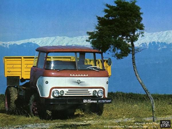 Вот, решил перепостить статейку с лурки. Некоторые слова, изменены, с целью соблюдения правил форума. А зачем? В общем-то, в далекие послевоенные времена в СССР крайне не хватало самосвалов. Перед войной их тоже не хватало, но после войны — особенно. Катались на ленд-лизовских «Студебеккерах», «Шевроле» и немецких трофеях, которых осталось мало и на которые сажали только избранных, и на полуторках — ГАЗ-АА, — которые для строительства коммунизма годились мало[1]. Поначалу были ЗИЛ с Мытищинским машиностроительным заводом(ММЗ), но потом, ви таки будете смеяться, в Грузии была произведена попытка запилить новый тип грузовика. Вначале эти шушпанцеры гражданского применения делали на базе московских ЗИЛов, позже — стали штамповать сами. Докамазная эпоха «Страшнее тигра или рыси автомобиль из Кутаиси » — Старая поговорка. Первая модель К 1958 году конструкторами-виноделами кутаисского завода был разработан седельный тягач КАЗ-606 «Колхида», в основном предназначавшийся для транспортировки кубаноидных овощей и узбекского хлопка. Изначально тягач имел кабину собственной разработки при виде которой ночью можно было обосраться от страха, а дети начинали заикаться. Однако затем в погоне за СШП конструкция этого ужаса дорог была стырена с античного американского бескапотника GMC-L4000. Машина имела спальник, в связи с чем котировалась у хиппи-автостопщиков и вошла в их фольклор: «Застопишь „Колхиду“ у берега Нарвы». Также имела много новаторских технических решений (например, бескапотная компоновка) и была народна дёшева в производстве, а потому тут же запилена на конвейер и заполонила нишу, в которой сейчас работает КамАЗ. Двигатель Колхиды (как у ЗИЛа) развивал максимальную мощность около 109 лошадей, чего для 9,5-тонного прицепа было явно маловато. По ровной дороге и без встречного ветра тягач мог развить скорость чуть менее чем 60 км/ч. При разгоне слабый двигатель на гружёной машине приходилось раскручивать чуть более чем полностью до максимальных оборотов. При такой скорости аэродинамически вылизанная кабина, создающая ламинарные потоки обтекающего воздуха, была явным излишеством. Из-за этого в 1976 году появился КАЗ-608В, прозванный «сервантом» за квадратную кабину с плоскими, а не гнутыми, как у 606-го, стёклами, но всё остальное в нём осталось по-прежнему. Неопытный водитель, а того скорее неопытный энтузиаст, взявшийся водителю помогать, мог при защёлкивании кабины получить нокаут набалдашником рычага (отпирания) в разные места, а именно - в зубы, ежели был ростом выше 190 см и точно в лоб при росте 185. Людям невысокого роста сильно легче тоже не было. Национальная специфика «Грузины шумною толпою Толкали в гору «Студебеккер». О чём, товарищи, говорят нам слова поэта? Они говорят о бессилии американской техники и мощи грузинского народа!» — Из доклада Лаврентия Павловича Берии на XVI съезде ВЦСПС «Гордость Грузии — слёзы России» — старый и мудрый водитель «Колхиды» В самый разгар развала партия послала в Кутаиси группу передовых (прошедших когда-то многолетнюю практику на ФИАТе) инженегров ВАЗа с заданием помочь маленькой, но гордой республике развить своё автомобилестроение до невиданных высот. Проведя инспекцию работы предприятия, гости собрали лучшие кадры для доведения до их внимания плана антикризисных мер: повесили чертежи, схем