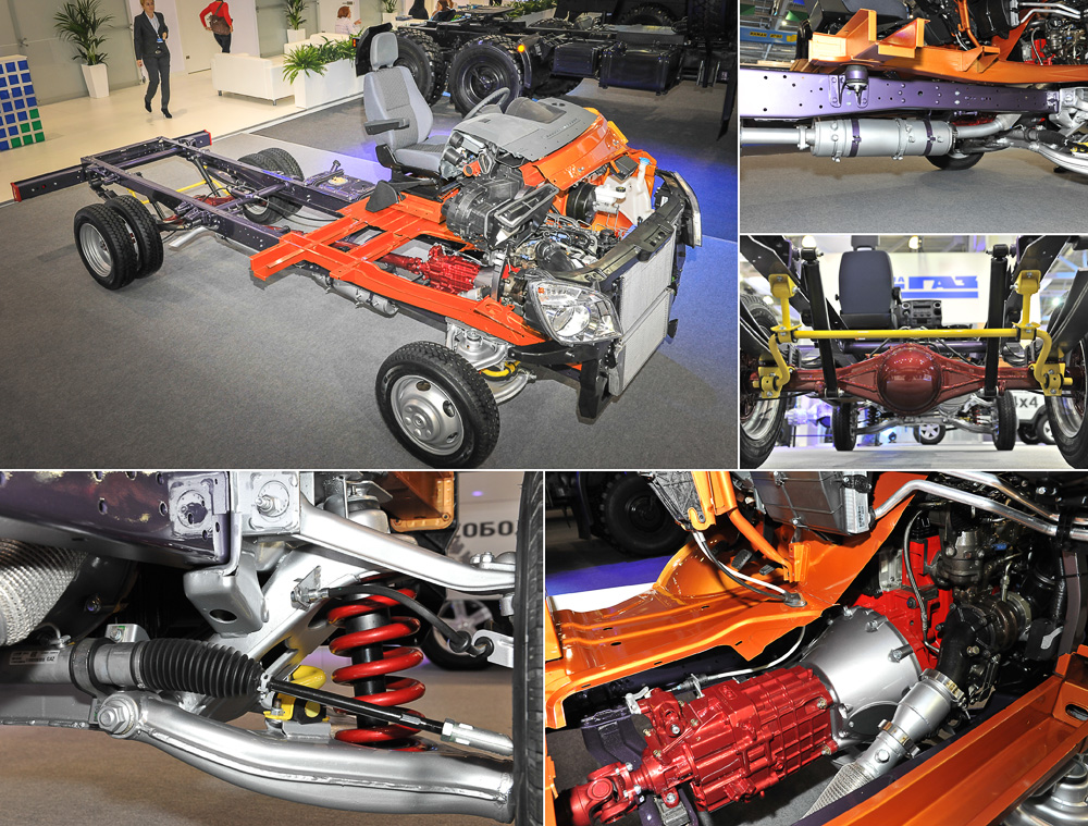 В тот момент, когда «легковая» общественность внимательно рассматривала новинки Франкфурта, «грузовой» автомир следил за другой выставкой — столичным биеннале Comtrans’2013. И хотя наш проект обычно не уделяет внимание грузовикам, мимо этой выставки мы пройти не смогли: здесь Горьковский автозавод презентовал целую россыпь «легковых» новинок! Производство Газели-Next стартовало весной — тогда заводчане презентовали только короткобазный бортовой грузовик. Чуть позднее появилась длиннобазная версия, которая вовсю продаётся, а сейчас завод представил грузовичок со сдвоенной кабиной, маршрутку, автомобиль скорой помощи и даже новое поколения трудяги «газона», который получил кабину от Некста. Новая маршрутная Газель: с ABS и высоким потолком Прежняя маршрутная Газель создавалась фактически от безысходности. Стране понадобились автобусы малой вместимости, и самым простым решением было построить такую технику из обычного фургона: врезать стёкла, установить сиденья... Машина получилась тесной и не самой удобной. В полный рост внутри такого автобуса не встанешь, двери открывают сами пассажиры. Поэтому, когда на рынке массово появились более вместительные фургоны иностранных марок, Газели начали сдавать позиции. На привычные маршрутки пассажирская версия Газели-Next похожа мало. Тех, кого смущает некстовская «высоколобость», успокоим: управляемость автобуса оттачивали на одном из европейских полигонов совместно с европейскими же специалистами, так что излишней склонностью к опрокидыванию 18-местная машина отличаться не будет. Также со временем появится опционная система стабилизации (над этим уже работают газовские инженеры), так что Некст станет ещё безопаснее. Выпуск автобусов ГАЗ не планирует отдавать на откуп частникам, а займётся производством пассажирских машин самостоятельно, на производстве спецтехники. Версия для городских перевозок — только начало. Уже готовы пригородный вариант на 18 посадочных мест, корпоративный, туристический и школьный (на фото — слева) автобусы Нет, газовцы, конечно, пытались создать каркасно-панельный автобус (эта технология подразумевает постройку специального пассажирского кузова на «голом» шасси), но прежнее поколение «полуторки» не подходило для подобных целей — в первую очередь, машине банально не хватало тормозов! Зато новейшая Газель-Next для таких переделок подходит идеально, поскольку конструкция шасси изначально рассчитана на 4200 кг полной массы, а значит, по тормозам появился достаточный «запас». Последние, кстати, оснащены ABS. Чтобы не отвечать на многократно повторяющийся вопрос, как устроена Газель-Next, газовцы привезли на выставку «препарированное шасси»: дескать, смотрите, изучайте, делайте выводы. Жёлтым, кстати, выкрашены стабилизаторы поперечной устойчивости, которые не всегда встретишь на коммерческой технике! Делается пассажирский Некст по технологии «больших автобусов»: на шасси монтируется стальной каркас, на который навешиваются панели из оцинкованной стали (капот и боковины) и пластика (крылья, передняя и задняя панели, крыша). Другие признаки «настоящих автобусов» тоже присутствуют: передняя распашная дверь — с электроприводом, высота салона — внушительные 190 см, над креслами «протянуты» поручни. Самих кресел — 18, плюс один человек может ехать стоя. Впрочем, 