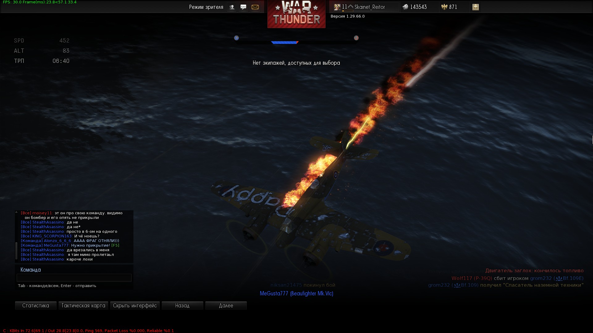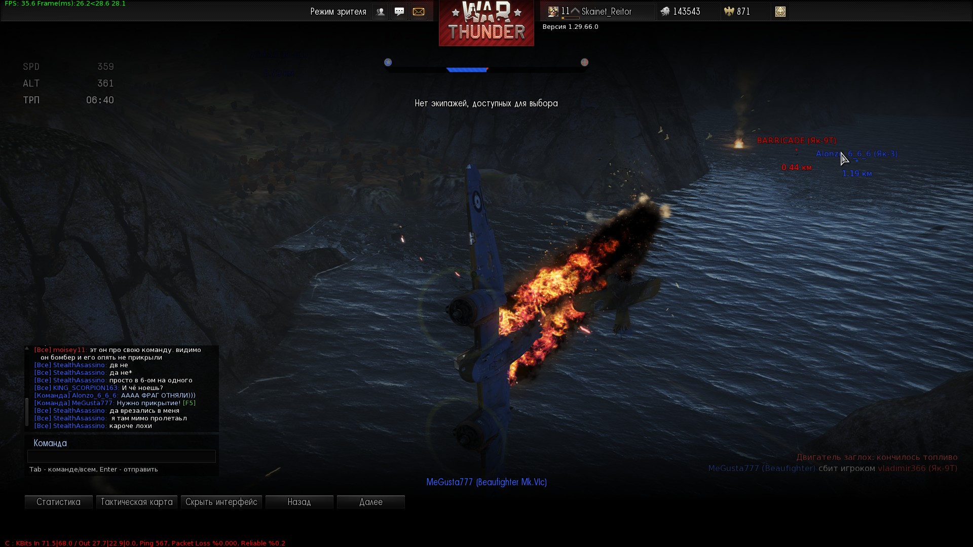 Столкнулся на просторах интернета с World of Tanks, и вылезя на сайт узнал о том что будут еще и самолеты от них же, но пройдя отбор и попав на ЗБТ, понял что с нашим пингом ирать не реально. Зато случайно столкнувшись с аналогом данной игры, War Thader, наконец то смог нормально полетать, не знаю как но они как то добились того что пинг по сути не важен, жрет трафика не намного больше чем танки, и лагов нет ПыСы оптять Матроскин... Аккаунт здох... Сообщение отредактировал Конопушка - 28.9.2013, 18:44 -------------------- 89248542030