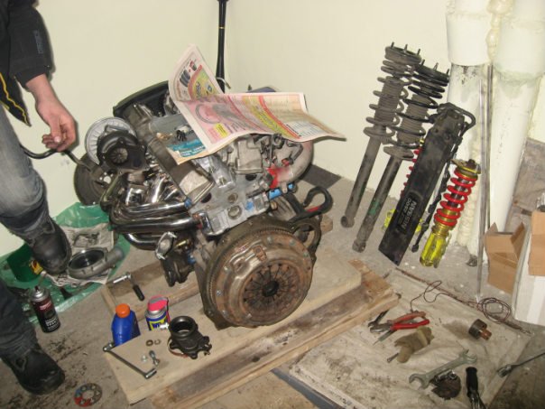 ![]() Есть у меня один товарищ из обеспеченной семьи который болеет скоростью и автомобилями Nissan и попался ему как-то автомобиль Nissan Skyline HR34 VQ25DE 4 wd АКПП, за очень небольшие деньги с мёртвой подвеской. Автомобиль стоил своих денег, вопросов по кузову к нему не было. Фото сделано после постановки на учёт, таким он пришёл к новому хозяину. (лапти были купленны отдельно) ![]() Приехал к нам в гараж, посмотрели, подумали, покурили, подумали и решили с такой подвеской шибко не погонять и было решено перетрясти подвесочку, поставить полиуретан и воткнуть регулируемые стойки от реального GT-R`а. Всё необходимо было заказанно и доставленно ![]() Фото после доработки подвески ![]() Собрали, сделали развал, прогнали... Подвеска радовала, но стоковый атмосферный мотор конечно не вёз как хотелось... Тогда и было решено поставить RB25DET и палку. Обзвонили разборки по поводу коробки, все называли какие-то лютые ценники от которых вылаз левый глаз, но кто ищёт тот всегда найдёт - на одной разборке нам была предложена КОНТРАКТНАЯ МКПП за 5000руб. Через 20 минут мы уже грузили сею славную коробку в багажник Двигун купили во Владике. Что двигун, что коробка были в очень хорошем состоянии. Так же были заказаны турбинка, кевларовая сцепа, коллектор под турбину, радиатор, интеркуллер, блоу-офф, и ещё много много необходимых для доработи запчастей. Так же были переделаны тормоза - земенены тормозные диски на перфорированные и двухцелиндровые суппорта ![]() Всё наконец пришло и начался подготовка движка ![]() ![]() Были расточены и отшлифованы впускные каналы, заменены маслосъёмные колпачки, вкладыши, сальники, валы. Двигатель был успешно установлен. Потом поимели много-много секса с электронникой В итоге получили : ![]() ![]() Фотки подкапотного пространста выложу позже. НА данный момент турбинка дует 0.9 кг, но это пока. Пока ещё настраиваем. Сказать могу одно - дует как ненормальная Время на 402 метра и разгон пока не замеряли. Вот! У кого возникли вопросы - спрашивайте, постараюсь ответить -------------------- |