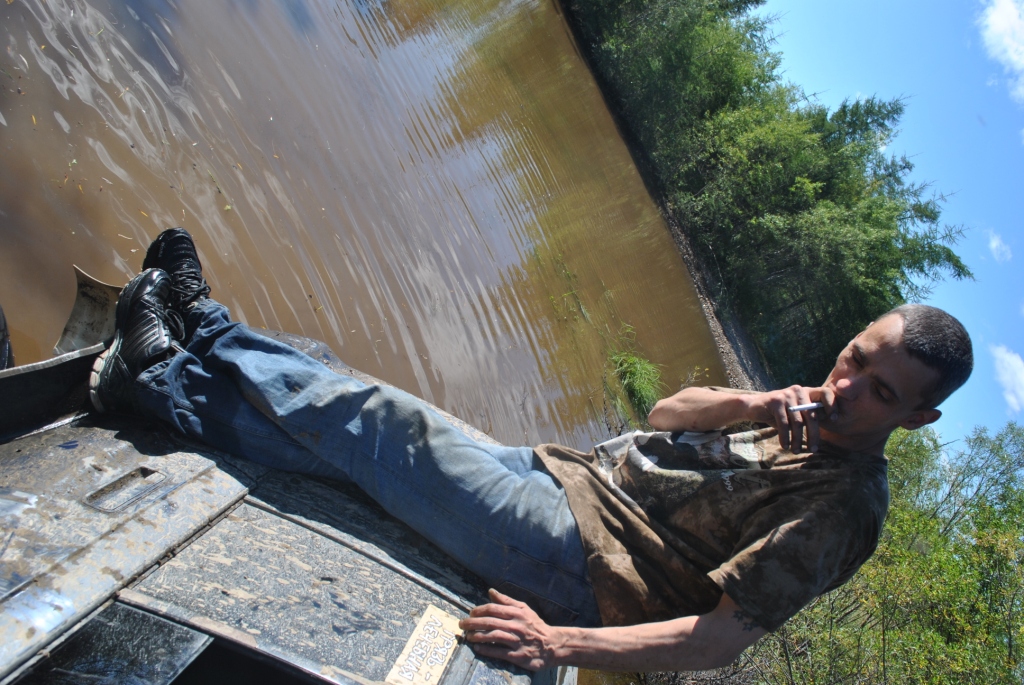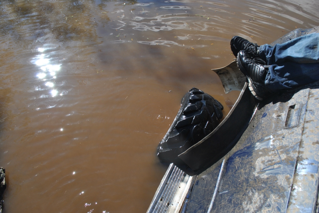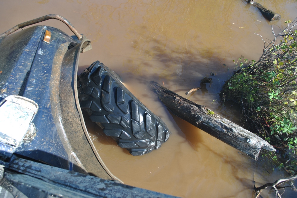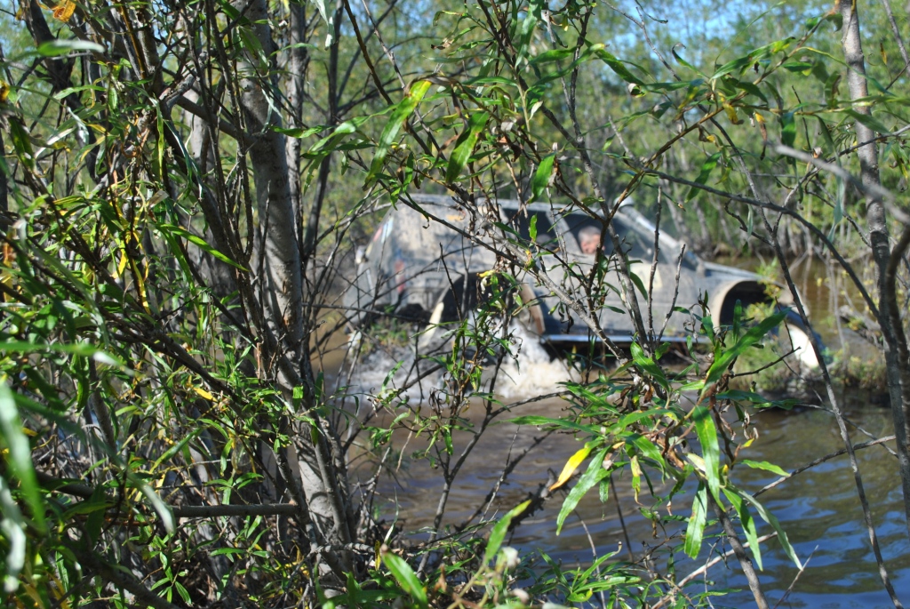Главная цель сегодняшней вылазки было найти место под предполагаемый лагерь для соревнований, чтоб и связь и пространство и водоем поближе. Присмотрели несколько вариантов и выбрали лучший. Кто машину чинить Кто предаваться ничегонеделанью А я собаку "мучила" Миша с его штурманом Иваном решили что найти лагерь мало их зовет дорога и резво поскакали в неизвестном направлении. Вернулись довольные и воды привезли.....прям в салоне Обсохли, подремантировались, а тут и Faust c _VIKTORY_ мимо проезжали. Тут mik и говорит им "птичка полетели со мной, я знаю где много вкусного", а им этого только и надо. Мне любезно предложили место фотокорра. Но прошу сразу извенить меня за качество снимков, но фотографировать одной рукой (второй я держалась за ручку в потолке эскудика mik'а, а то в открытое окно бы улетела) проблематично. Мы успешно форсировали несколько "луж", если эти водоемы так можно назвать: А вот на последнем мини море случилась досадное недоразумение, машина попала в плен в самом центре водоема, зацепившись за корягу, и как-то неожиданно начала заваливаться на бок, на мой бок, а плавать я не умею. Самый запоминающийся момент был когда я поняла что уже сижу не на кресле, а в воде, выхлоп повалил в салон, поэтому глаза немного резало и в этот момент я фокусирую взгляд на том что через моё открытое окно вода наглым образом просто захватывает пространство, и в этот момент я подумала не о том что плавать не умею, что уже вся мокрая, что надо выбираться, а "№";%:? фотоаппарат, его нельзя утопить" мне было искренне его жаль, новый-то мне никто не купит, так что его я берегла. Вид из окна, до того как начали заваливаться В какой момент Миша скомандовал "Мы застряли" я не помню, помню открытую водительскую дверь и я быстро в неё прошмыгнула, стали озираться по сторонам и оценивать ситуацию Второй экипаж успел уйти дальше, от этого становилось грустно, я не планировала сегодня утонуть в попытки добраться до берега. Но нас конечно же не бросили, вернулись и кажется немножко ненавидели. Вот в таком положении нас застали: Меня и Ивана эвакуировали из машины, ибо толку от нас мало, а лишние переживания не к чему. Поэтому свои эмоции пусть "спасатели" дальше пишут, а с меня фото: Сообщение отредактировал Валькирия - 25.8.2014, 15:36 -------------------- 8-91Ч-0З1-5б-98