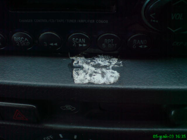 заценивайте =) ! царапки остались =( от ножика видать которым от этого паскудства железяку отрезали или чо там было. зато суперклея как небыло. итак.... 1. снял панель, оттёр пальцем и тряпкой остатки двухстороннего скотча. остался нехилый такой слой клея. 2. на маленьком участке испытал "средство". там где закрывает магнитола и если что - косяка видно не будет. На пачке от "средство" было написано просто - помазать и стереть. ну я чючють помазал панельку и стёр. Следов нет. Думаю ладна... помазал рядом и оставил... попил кофе, покурил, стёр остатки "средства" - следов нет. Значит панельку не захерачю =) 2. намазал "средство" на клей и сразу протёр тряпкой. Вкурил всю систему. "средство" просто разьедает загуститель в составе клея. и он тряпочкой так непренуждённо стирается. но по чючють. стёр немного - намазал, стёр - намазал - стёёр-амазал....и пол часа вот так. палец устал тереть =) но стёр. весь клей! и следов неосталось. кроме царапин =( Вывод: "Средство" полюбому должно быть в доме! В Тринитроне цена 60р. кортинко. Спасибо xoma99 за наводку =) -------------------- |