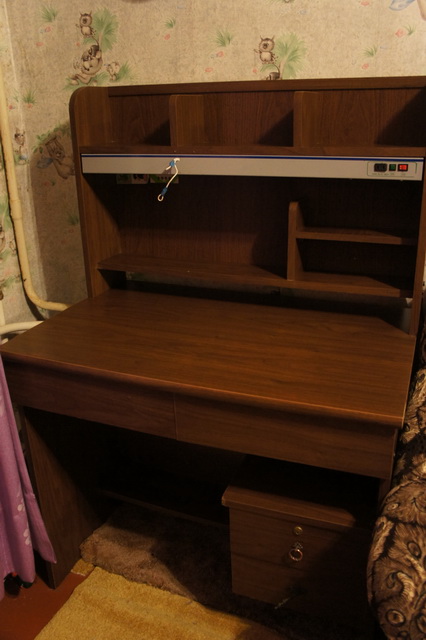 старенькая стол-парта (угол тумбочки потрепан и правый угол столешницы), подсветки нет давным давно.