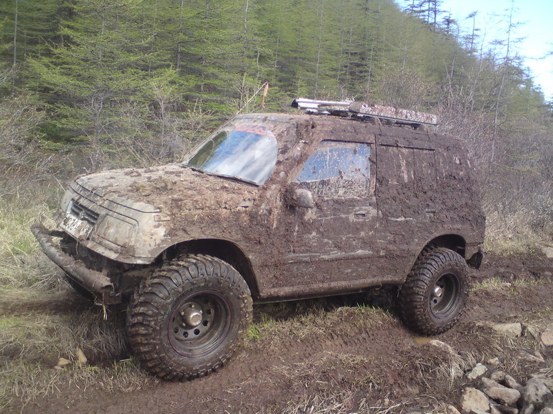 Утром - те же яйца, только в профиль. На выезде с ночевки в первых же двух лужах погнули якорь под прямым углом... Ну чтож, положили в машину как трофей. Теперь наши друзья - еще и бревнышки (вы наверняка на обратном пути видели эти лужи с бревнами, оттащеными чуть в сторону). Дальше до перевала прошли все спокойно, практически нигде не застревая, объезжая все зачадные места. На перевале сделали привал для пообедать, оттуда и фотографии. Спустились легко, нашли какую-то дорогу, ломанулись по ней. На выезде к полям вспомнили что (ах, да) у нас в машине согнутый якорь, поэтому нам нужно половину леса привезти на поля с собой. Нашли какое-то обгорелое деревянное сооружение в кустах (что-то типа волокуши), начали разбирать. Тут откуда ни возьмись - Рыбакоп с Паджеро959, мы за ними) Пока они качали колеса, постояли с ними, узнали что до самых говен мы все-таки не доехали (обидно, да Ага, еще на обратном пути по Ольской трассе от тряски слетел крюк лебедки, пролетел под колесом, через полуось вескочил назад, в полете царапнул крыло, отколол кусочек с поворотки, оставил вмятину на кенгурятнике и зацепился за бампер Теперь точно все. (чукча не писатель..не бейте больно за мое невнятное изложение) -------------------- Добро и пофигизм.