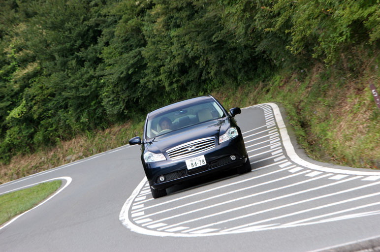 Источник: CARVIEW.CO.JP Перевод: AUTO.VL.RU Авторы: Somiya Takeo Фото: Kawashima Roland при перепечатке ссылка на источники текста и перевода обязательна! Машина с самым мощным среди японских моделей 333-сильным двигателем. Как известно, до недавнего времени в модельном ряду Nissan Fuga стояли модели с 2.5- литровыми и 3.5-литровыми двигателями. Всего, стало быть, две разновидности, оба мотора 6-цилиндовые с V-образным расположением цилиндров. И вот наконец решено дополнить этот ряд еще двумя модификациями высшей категории: 450GT и 450GT Sport package, оснащенными 8-цилиндровым двигателем с рабочим объемом 4.5 литра. Сам по себе двигатель модели VK45DE нельзя считать новинкой. Ведь он уже стоит и на машине Nissan Cima, и на представительском автомобиле Nissan President. Но перед тем как ставить в автомобиль Fuga, его решено было подвергнуть частичной переналадке. В частности, была изменена система впуска, был усовершенствован механизм газораспределения, был предпринят ряд мер, направленных на снижение трения во внутренних узлах, - и вот, его максимальная мощность, составлявшая до усовершенствования 280 л.с., теперь равняется 333 «лошадям». То есть, ранее существовала ограничительная планка – 280 л.с., потом ее убрали, и как следствие, появился 4.5–литровый мотор с существенно улучшенными скоростными характеристиками. Теперь давайте смотреть: по мощности мотора модель Nissan Fuga встала в один ряд с автомобилем BMW 545i, который, как известно, тоже оснащается 8-цилиндровым V-образным двигателем рабочим объемом в 4.4 литра. Немецкий двигатель развивает такую же мощность - 333 л.с., а его наибольший крутящий момент равен 45.9 кг/м. Напомню, что у двигателя, стоящего на автомобиле Nissan Fuga, эти показатели составляют 333 л.с. и 46,0 кг/м соответственно. Но не следует думать, что модель 450GT отличается от своих 6-цилиндровых «сестер» только характеристиками двигателей. На самом деле у нее во многом иная комплектация. Вот, к примеру, оформление обеих салонов выполнено в «деревянном» стиле. Но если ранее использовался пластик, то теперь в салоне 450GT можно увидеть панели из натурального дерева. Кроме этого можно заметить, что в новом салоне стоят кожаные сидения, а передние кресла имеют даже индивидуальную систему вентиляции. Сидение переднего пассажира, к тому же, имеет подставку для ног, чего не было в салонах машин прежней, 6-цилиндровой серии. Точнее сказать, ее можно было и поставить, то только за дополнительную плату, то есть, в виде опции. Зато в новом салоне 8-цилиндровой модели все это входит в стандартную комплектацию. Достойное пополнение престижного ряда Infiniti. Внешне новая модификация Fuga мало чем отличается от машин, оснащаемых 6-цилиндровыми двигателями. Хотя, если брать в расчет мелочи, то их наберется немало. Например, задний бампер стал явно больше, и теперь он не так сильно выдаётся назад. То же можно сказать и о выхлопных трубах. Стандартный размер шин в прежней, 6-цилиндровой версии составлял 225/55/17, а в новой машине подрос и стал равняться 245-45-18. Хотя, если брать спортивную комплектацию машин, то здесь размер покрышек оказывается одинаковым, 245/40/19. Сейчас, как известно, в Японии у всех на слуху название Lexus. В этой связи стоит напомнить, что модель Nissan Fuga тоже относится к числу тех автомобилей, которые значатся в американских каталогах под маркой машина высшего класса. Эта марка - Infiniti. Появление машин этой марки в самой Японии 