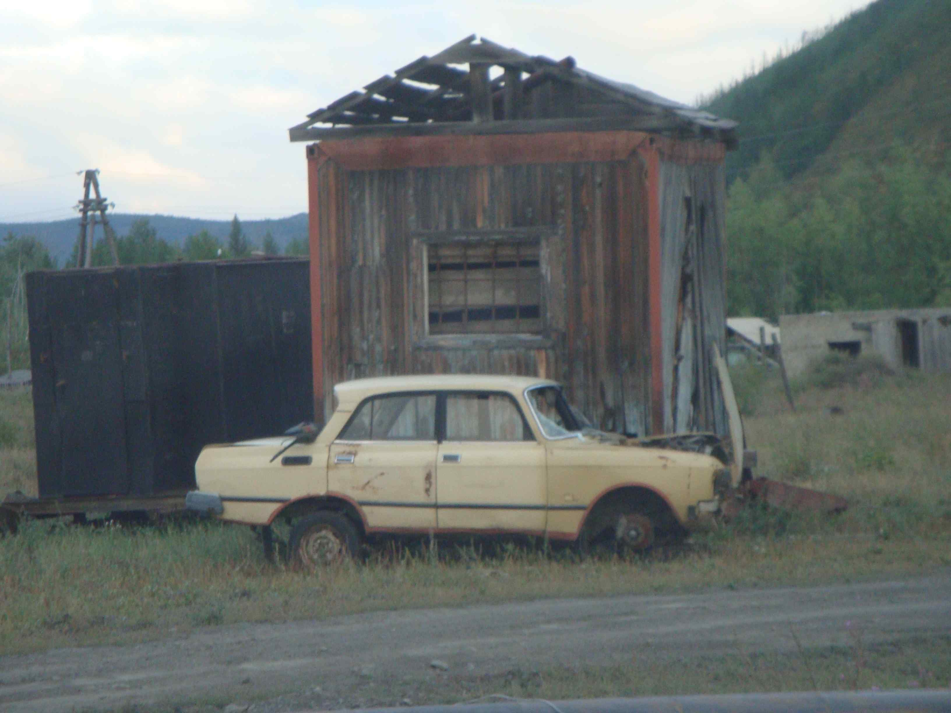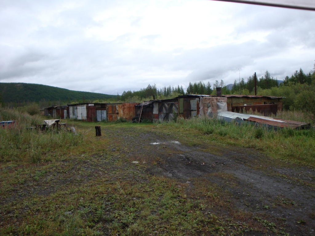 На всем расстоянии до Усть-Омчуга встретили только одну бригаду пожарников. Не спеша, добрались до поселка. Было решено осмотреть бегло населенный пункт, впоследствии, как выяснилось, поселок ничего так по сравнению с другими жилыми комплексами. Жить можно, держится, скорее всего, за счет налоговых средств от предприятий-золотодобытчиков. Заехали в местную кафешку на окраине поселка, т.к. желудок уже начинал урчать и просил еды. Купили по чебуреку (как помнится, по 44 рубля за штуку), сразу подогрели нам их в микроволновке. Выйдя на улицу, совершили мобильные звонки в Магадан (в Усть-Омчуге работает связь МТС), т.к. до Сусумана потом связи уже нигде не будет. После этого отправились за окраину поселка, где, заехав к какому-то отстойнику (пережитку старательских разработок), перекусили чаем с чебуреками. До самого Усть-Омчуга местность вокруг дороги мало изрыта старательскими разработка-ми. Далее же по Теньке пейзажи, как после войны. Да и само полотно дороги оставляет желать лучшего. Хотя и стоят по трассе дорожники, однако над 1 работающим 10 человек вокруг склоняются. Местами скорость движения была, как «у черепахи по льду». Время шло, а мы держали путь дальше. Проехали поселок Транспортный, более похожий на нежилой (очень много развалин). Далее впереди по карте был Омчак (это 300 км по теньке). На всем пути от Усть-Омчуга до Омчака встретили только 1 драгу, неработающую. -------------------- Каждый сам выбирает свой путь