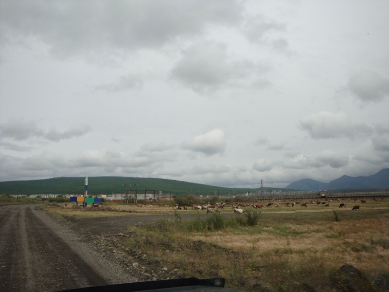 Выехали на основную трассу. Дорога и шире, и лучше по состоянию. Вдоль дороги стара-тельские отработанные полигоны. Быстро докатили до Мяунджы. Решили заехать в поселок, надо было б найти пирожков или что-то подобное перекусить с чаем.
