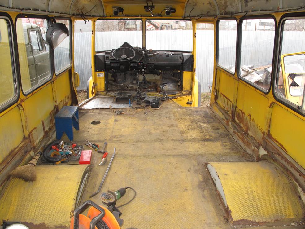 Автобус полноприводный, для чего делаете? Пока разобран, вырежьте заднее окно, укоротите свес.