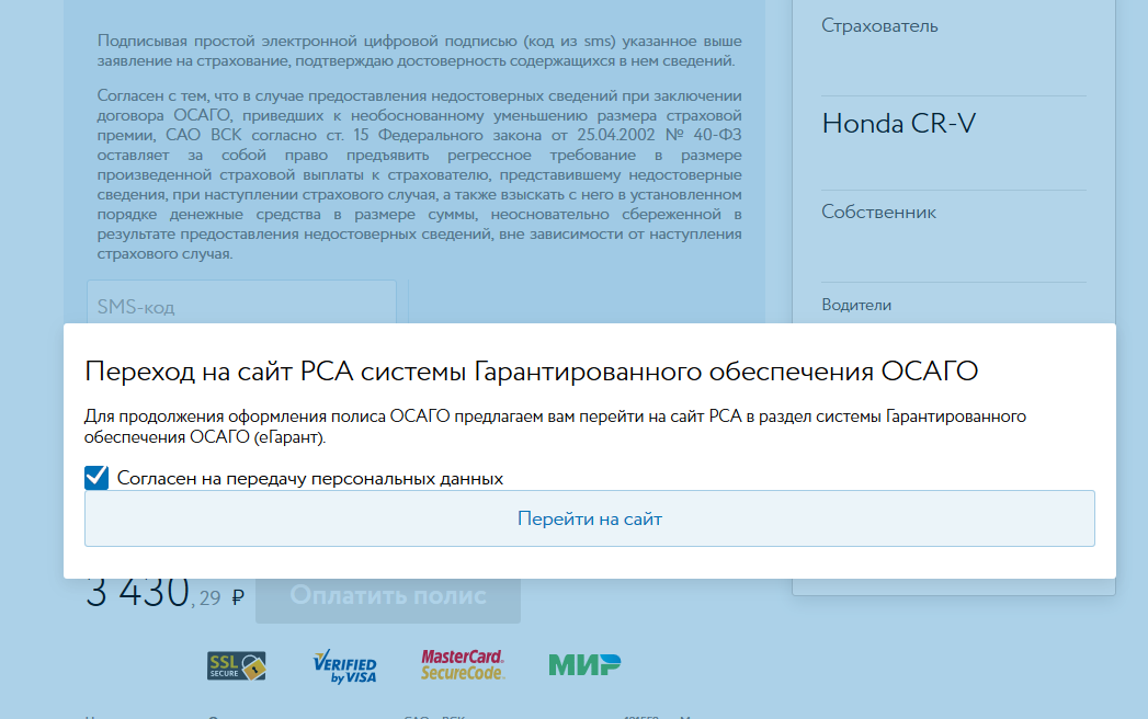 Я отказался при оформлении на сайте от РСА и оформился в СОГАЗ. Меня в Казань отсылал в страховую. В результате прикрепил сканы птс и сор, сделал страховку второй раз