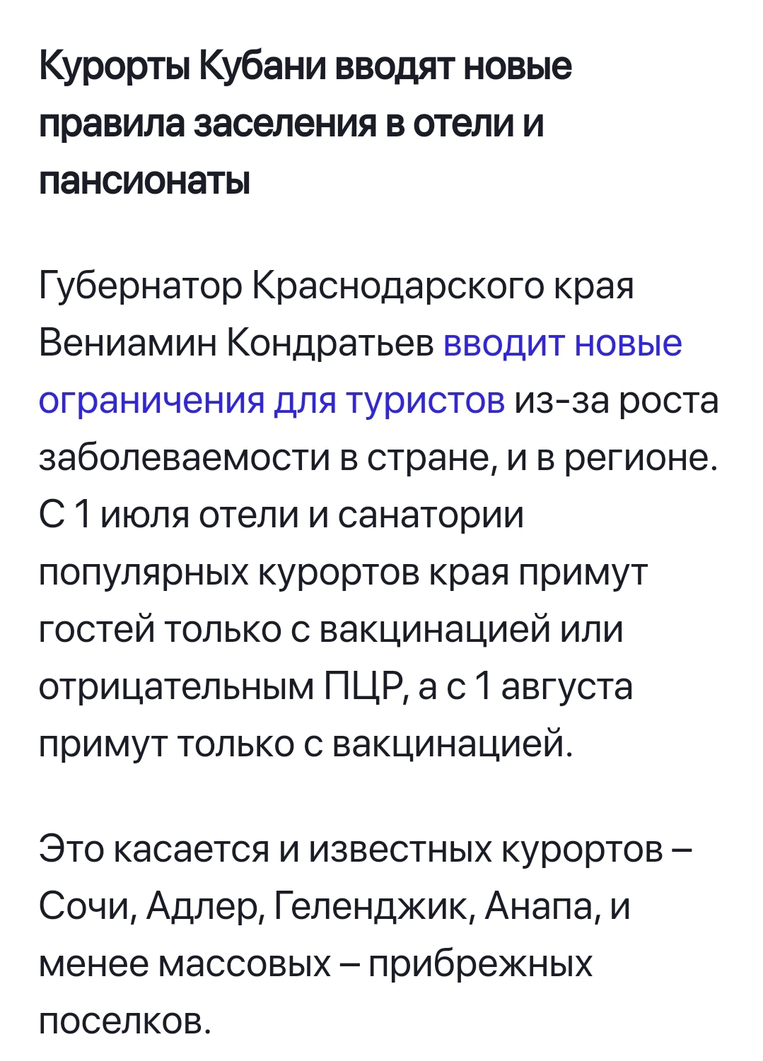 Цитата Свежая карта по статистике заболеваемости коронавирусом, опубликованная турецким минздравом, показала настораживающую статистику. Пока в целом по Турции продолжается тенденция к спаду случаев коронавируса, в туристической провинции Анталия число заболевших вновь пошло в рост. При этом медицинские эксперты в Турции уверены, что причина этого - иностранные туристы, и прежде всего туристы из России, где согласно российским же данным началась новая волна - на этот раз дельта-ковидная.