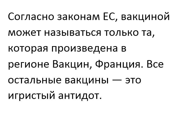 Не забываем, что существует возможность быть привитым совсем не прививаясь И овцы целы и волки сыты ... Ну за последнюю неделю два губернатора уже отличились. Один привился не снимая рубашку (с длинным рукавом), а второго прививали шприцом без иглы. Я знал, что на такие должности берут очень странных людей, но не подозревал, что всё зашло так далеко. -------------------- Политики – словно подгузники. Их надо почаще менять. И по той же причине.