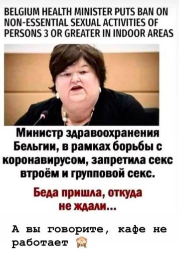 35 - новые случаи за сутки 11282 - всего выздоровело 290 - всего умерло 52400 - завершили вакцинацию 157 - получают лечение в стационарах (111 - не привиты) Хорошо бы ещё нашивки, конечно. Сколько раз привитый. Чтобы без очереди, ну хотя бы куда-нибудь. - Хватит этой твоей болтовни! Отвечай мне коротко- да или нет! Ты вакцинировался? - Нет! - А почему? - Да! Первое свидание. Он: - Света, мне на работе расширили полномочия. Теперь я проверяю паспорта у граждан. Ответственность огромная! От меня зависит безопасность и здоровье граждан. - А какая у тебя должность? - Контролёр в ТЦ. -------------------- Политики – словно подгузники. Их надо почаще менять. И по той же причине.