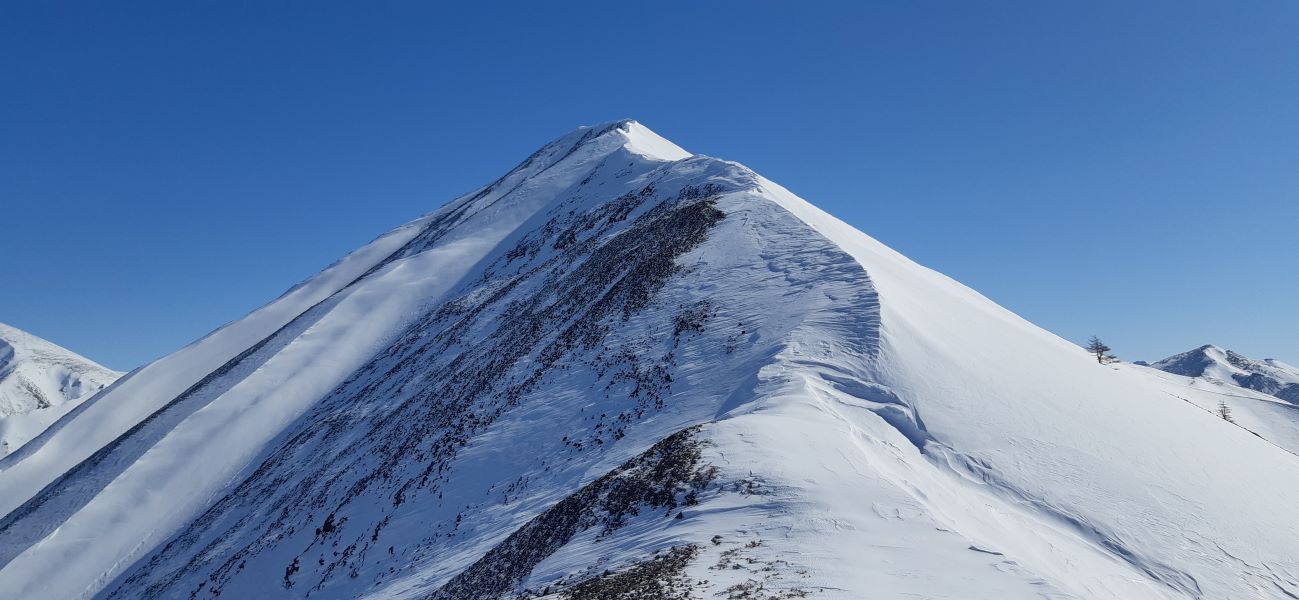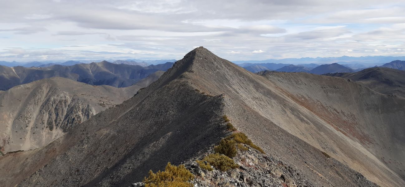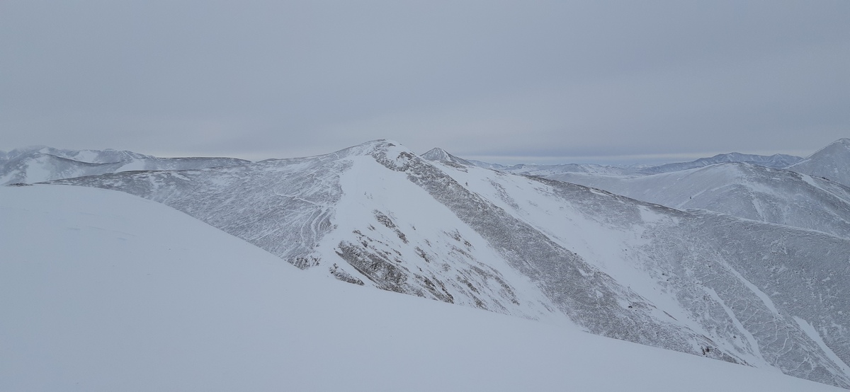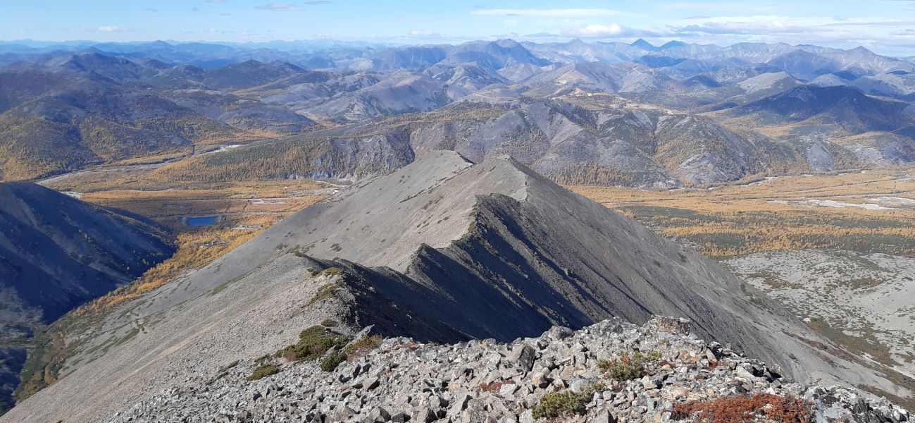 Когда год назад посещал отметку 1373 м в районе Эликчанских озер, то обратил внимание на красивый хребет вдали в районе озера Гранд. Оказалось, что это пик Завершающий с отметкой 1508 м. Он входит в десятку квалификационных гор магаданского туристического клуба, которые участникам клуба нужно посетить, чтобы получить определенный титул.