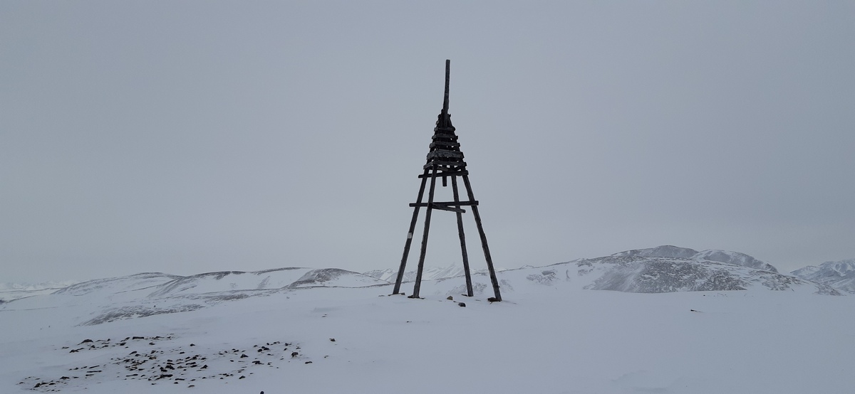 Сложно сказать, что появилось раньше - перевал Болотный или гора Болотная. После спуска с перевала гору видно примерно в 3 км от трассы справа (если едешь из Магадана). С виду непримечательная, невысокая, в профиль относительно пологая. Есть куда более интересные горы. Но раз обозначена на карте, захотелось разъяснить. Путь к горе осложнялся меняющимся рельефом, наличием небольшого снега и оврагами, которые формировал ручей Коран. Приходилось брать лыжи в охапку и переходить ногами. Тот траверз, который я выбрал для подъема имел крутой склон и местами очень неприятный плотный снег, который едва удавалось пробить трекинговой палкой и ногой, чтобы зацепиться и не полететь вниз. На обратном пути я это учел и спускался более безопасно. На самой горе встретились пара следов медведя, что повергло в небольшое уныние. Осмотр местности в бинокль ничего подозрительного не выявил. Ну и конечно же - трига. Деревянная, из старых добрых времен. На вершине было ветренно, намечался снег. На всё ушло около 5 часов. Когда подошёл к машине, уже начинались легкие сумерки. Кстати, на подходе к горе видел своеобразный забор из столбов, между которыми натянута в несколько рядов обычная проволока. Он частично повален. Такие же заборы видел уже пару раз на подходе к другим горам. Запретная зона? Но что там может быть запретного?