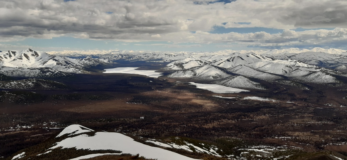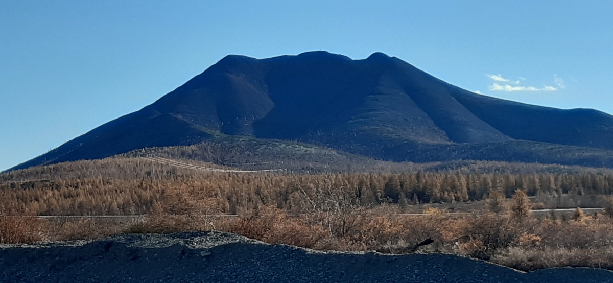 Сложно сказать, что появилось раньше - перевал Болотный или гора Болотная. После спуска с перевала гору видно примерно в 3 км от трассы справа (если едешь из Магадана). С виду непримечательная, невысокая, в профиль относительно пологая. Есть куда более интересные горы. Но раз обозначена на карте, захотелось разъяснить. Путь к горе осложнялся меняющимся рельефом, наличием небольшого снега и оврагами, которые формировал ручей Коран. Приходилось брать лыжи в охапку и переходить ногами. Тот траверз, который я выбрал для подъема имел крутой склон и местами очень неприятный плотный снег, который едва удавалось пробить трекинговой палкой и ногой, чтобы зацепиться и не полететь вниз. На обратном пути я это учел и спускался более безопасно. На самой горе встретились пара следов медведя, что повергло в небольшое уныние. Осмотр местности в бинокль ничего подозрительного не выявил. Ну и конечно же - трига. Деревянная, из старых добрых времен. На вершине было ветренно, намечался снег. На всё ушло около 5 часов. Когда подошёл к машине, уже начинались легкие сумерки. Кстати, на подходе к горе видел своеобразный забор из столбов, между которыми натянута в несколько рядов обычная проволока. Он частично повален. Такие же заборы видел уже пару раз на подходе к другим горам. Запретная зона? Но что там может быть запретного?