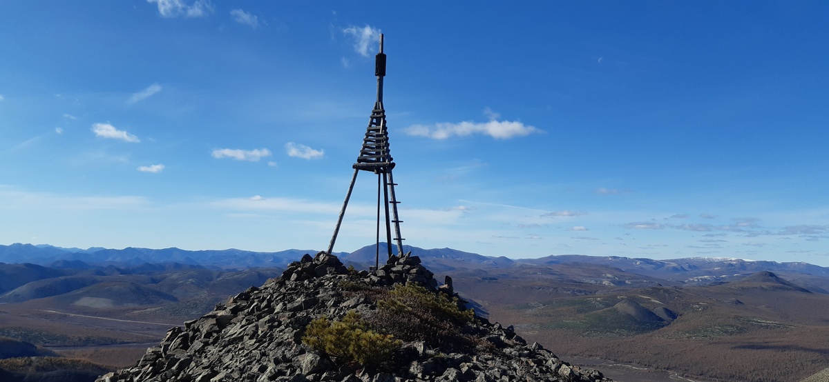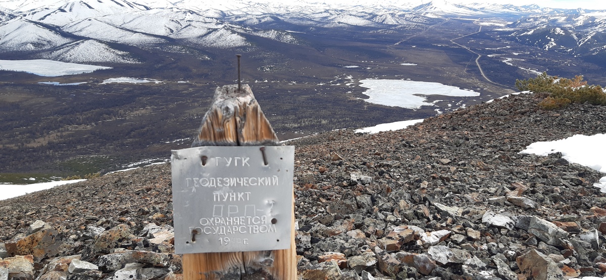 Я даже не знал о её существовании, пока случайно не обнаружил на карте. И сразу зародилась мысль, что гора-то не сильно далеко от дороги, можно попробовать за день дойти и вернуться. Я решил посмотреть, нет ли выхода на гору с соседних, ближайших к дороге гор. И оказалось - есть. Поэтому после разведки, выбрав погожий выходной я выдвинулся на маршрут. После подъема на отрог придорожной горы большая часть маршрута проходит по гольцам, почти без перепадов высот. Это очень удобно, ноги разгружаются. И уже перед самой горой есть спуск в красивую седловину и затем подъем на саму гору. Там уже перепад высот составит метров 100 по большей частью осыпному скальнику. Очень красивые лунно-марсианские пейзажи внизу. Судя по карте, из горы происходит источник термальных вод, что в общем неудивительно для тех мест. Но я по пути не видел - гора большая. всю не оглядишь. Трига старых времен, часть дощечек уже рассохлась и отвалилась, валяется неподалеку. Даже конусовидные бревна местами уже тронуты временем. Оно и понятно - там продуваемый район, высота 1411 м. Интересно, что на многих тригах уже замечал отметки 1989 года - тогда у геодезистов была массовая инвентаризация триг? Очень такое интересное место. Путь туда-обратно составил 5 часов, что в общем неплохо. Я думал - уйдет больше и первый раз при разведке вообще сомневался. что можно за день дойти - расстояния в горах обманчивы и иногда то, что кажется близким - далеко. И наоборот. Так что я был очень рад снова прикоснуться к истории и красотам Колымы. Спасибо горным баранам за их тропы - по ним в разы удобнее идти по осыпному скальнику. |