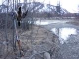 Вчера: так называемый сто-полста(мост через олу по основной),начало девятого вечера, не доезжая 200-300м до моста слева на обочине в хлам разорванная шкура оленя и косматый ужинает(я за рулем,мл.брат рядом),далее:
