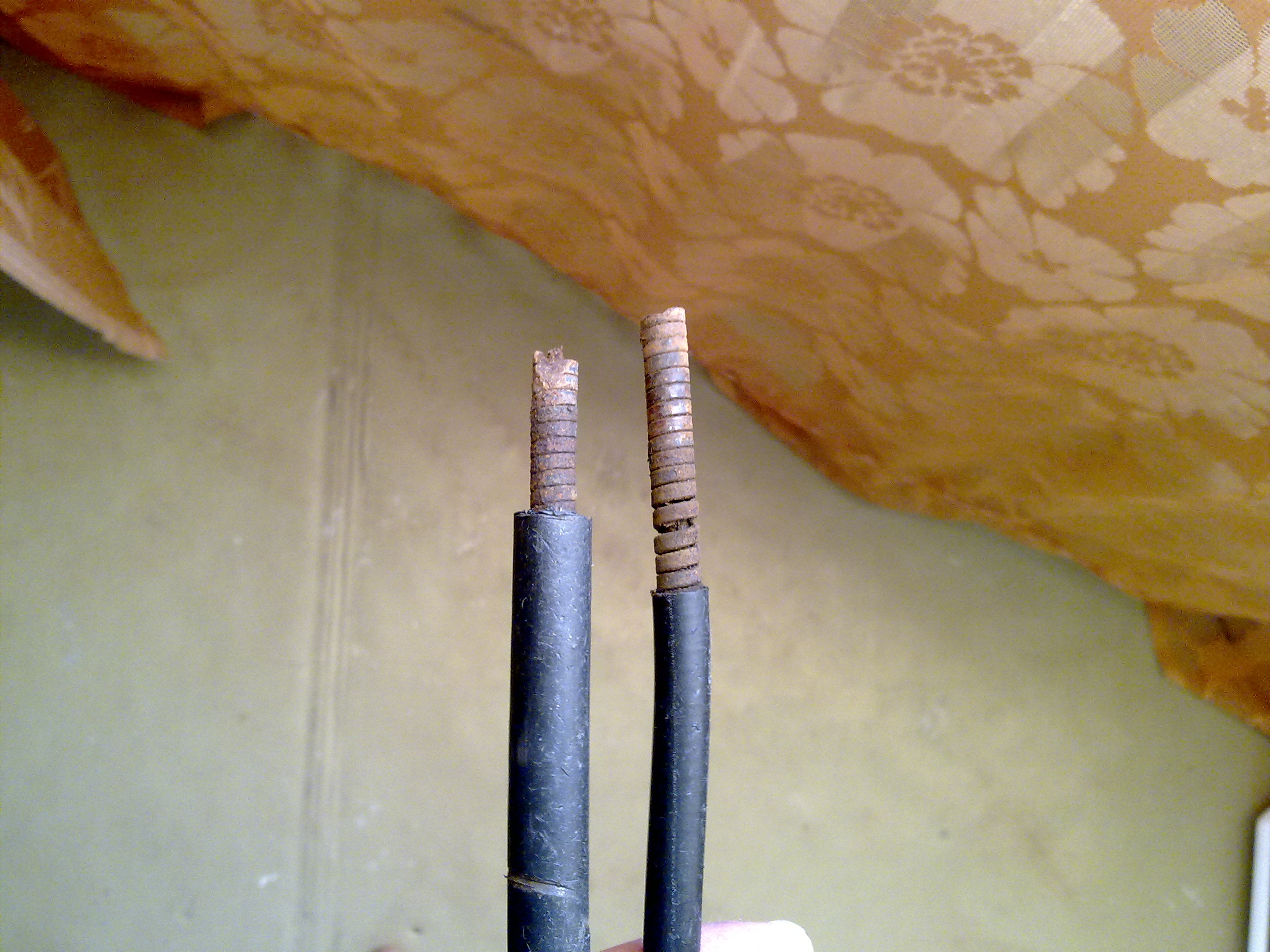 ситуация такая. взял машину с неработающим ручником. сейчас стал разбираться, залез под днище - оказалось, что трос левого заднего колеса порван. Причем порван как-то не логично. один конец порван по плоскости в которой измеряется диаметр, а второй как-то вкось и будто срезан чем-то острым. Трос я этот снял, отец друга рассказал что у него на машине была такая же ситуация, он снял его, почистил и скрепил оба конца холодной сваркой. Я не знаю, может тросы по структуре разные, но у меня скрепление холодной сварной выглядит не особо оптимистичным, думаю не приведет ни к чему хорошему. Строение троса такое: внутри под двумя плотными слоями защитной резины очень тугой слой металла закрученного по спирали как пружина и под ним - внутри - сам тросик. Резину я срезал примерно по 3-4 см с каждой стороны и при пробном наложении концы "пружины" не сходятся, плюс к этому, тросик внутри одного из концов сидит глубоко в пружине. И чтобы его достать нужно срезать эту самую пружину на 3 см по длине, примерно. Если всё же "заварить" сваркой - думаю - при общем затяжении ручника левое колесо будет тормозить больше чем правое...а это есть не очень хорошо. В общем - три вопроса. Можно ли как то это отремонтировать самому вручную? и если менять трос, то сколько он может стоить, и где лучше посмотреть(в плане стоимости)?