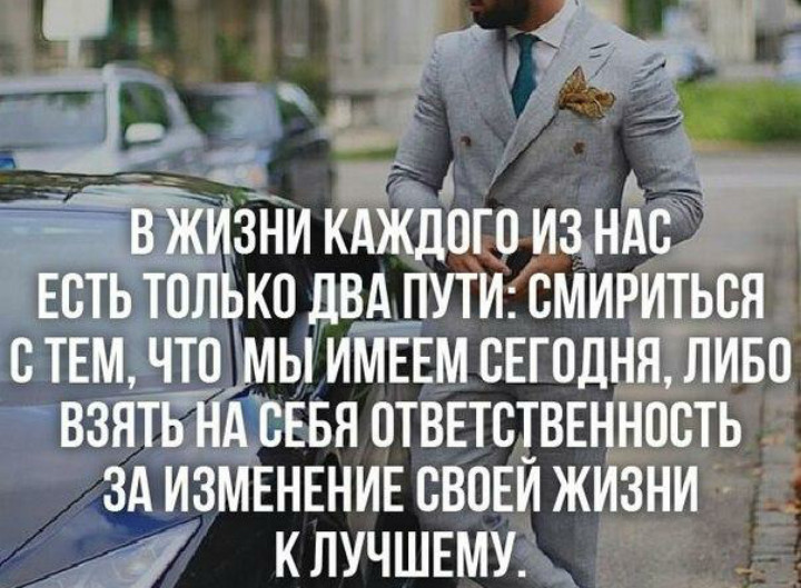Либо мужик за всё ответственный (терпит за свои и чужие косяки), либо он баба со всеми вытекающими отсюда последствиями. По сути выбора нет. Общество уже назначило тебе рамки, в пределах которых ты будешь проживать жизнь. И как следствие низкая продолжительность жизни по сравнению с женщинами. Только вот ради чего... -------------------- mp3 is not a crime