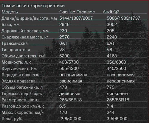 Audi Q7 против Cadillac Escalade, тест |
